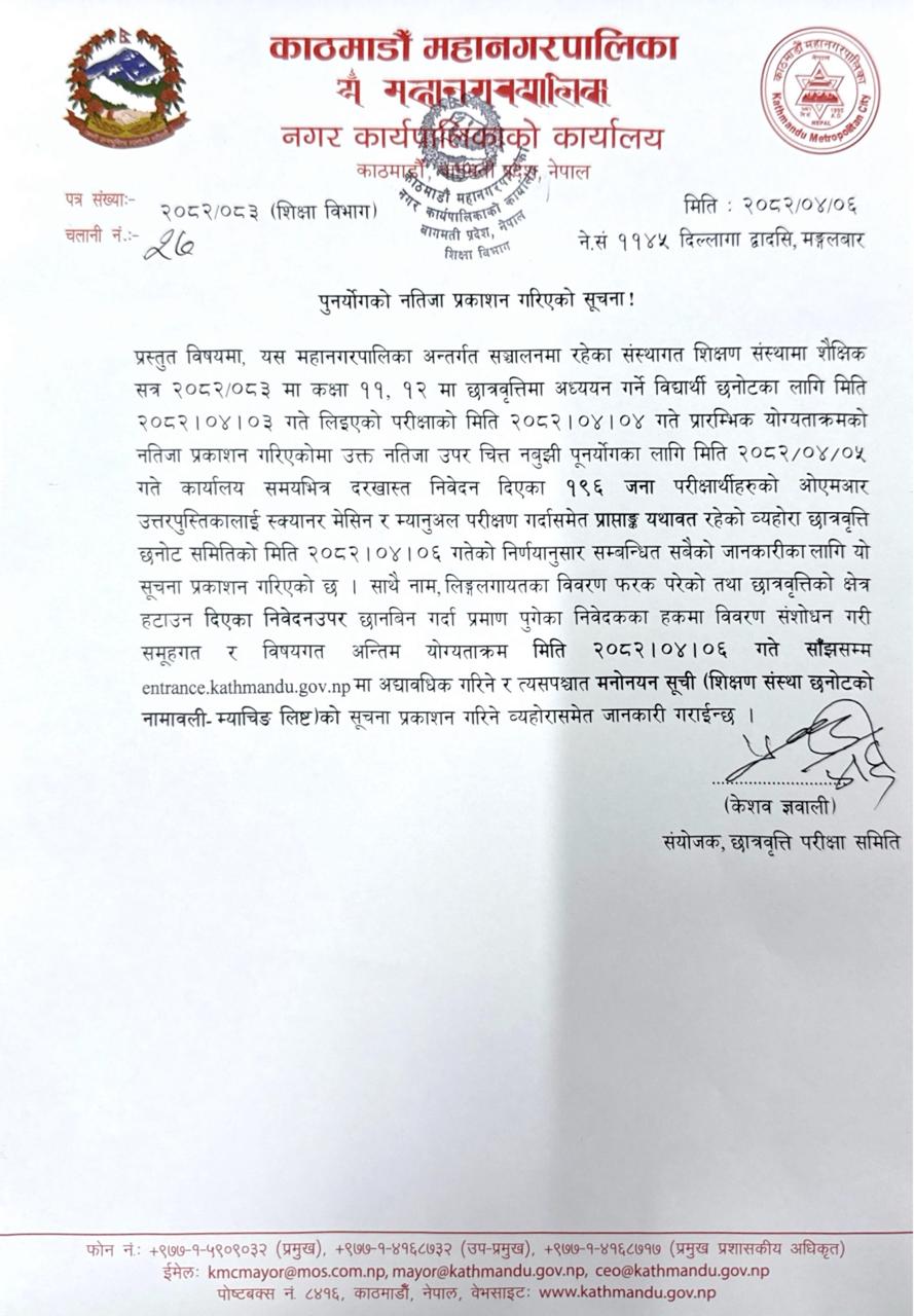 पुनर्योग र दावि बिरोध सम्बन्धमा केही जानकारी लिनु परेमा शिक्षा विभागको टेलिफोन नम्बर ०१४१६८७२० मा सम्पर्क राख्नुहुन अनरोध छ ।